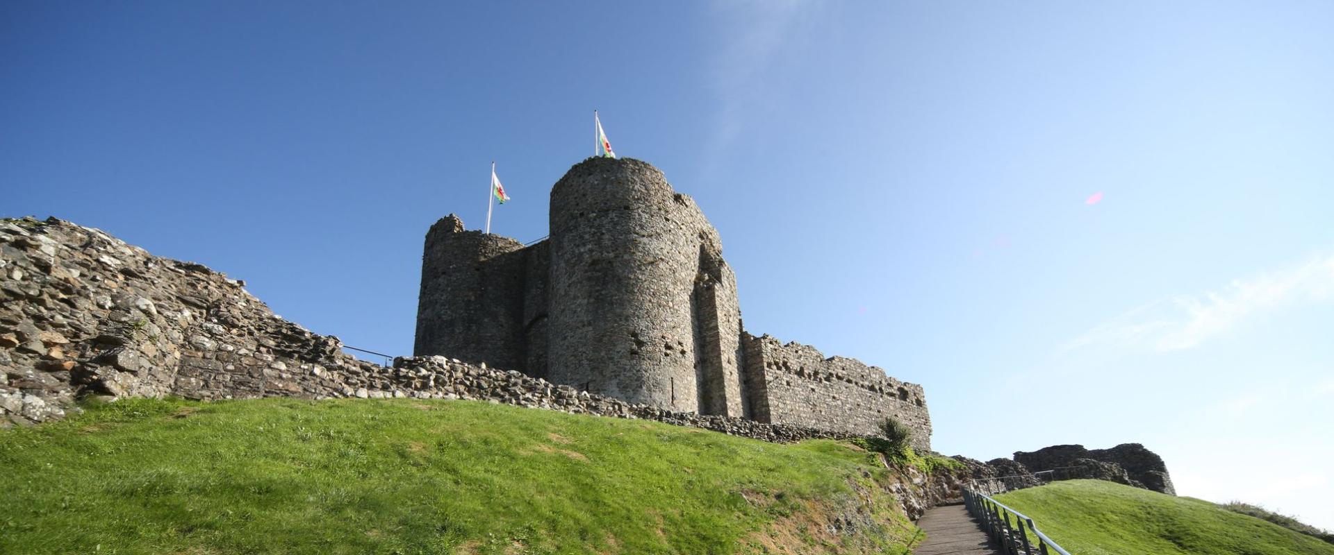Castell arfordirol ysblennydd a adeiladwyd – ac a ddinistriwyd – gan dywysogion grymus Cymru